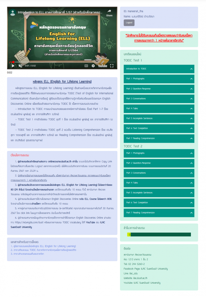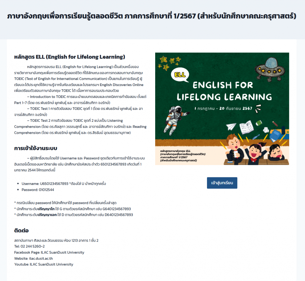 ภาษาอังกฤษเพื่อการเรียนรู้ตลอดชีวิต ภาคการศึกษาที่ 1/2567 (สำหรับนักศึกษาคณะครุศาสตร์)