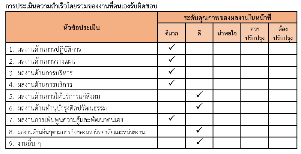 การประเมินความสำเร็จโดยรวมของงานที่ตนเองรับผิดชอบ