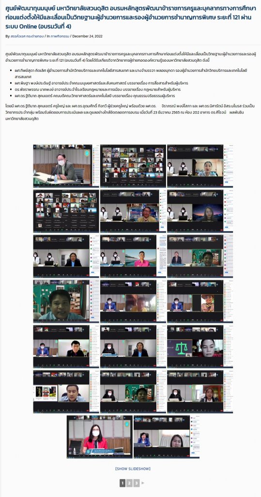 ออนไลน์ การอบรมวิทยฐานะ ผอ./รอง ผอ. ชำนาญการพิเศษ ระยะที่ 121