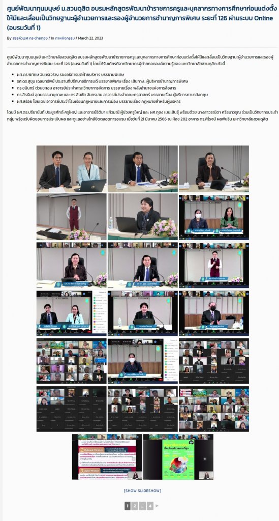 ออนไลน์ การอบรมวิทยฐานะ ผอ./รอง ผอ. ชำนาญการพิเศษ ระยะที่ 126