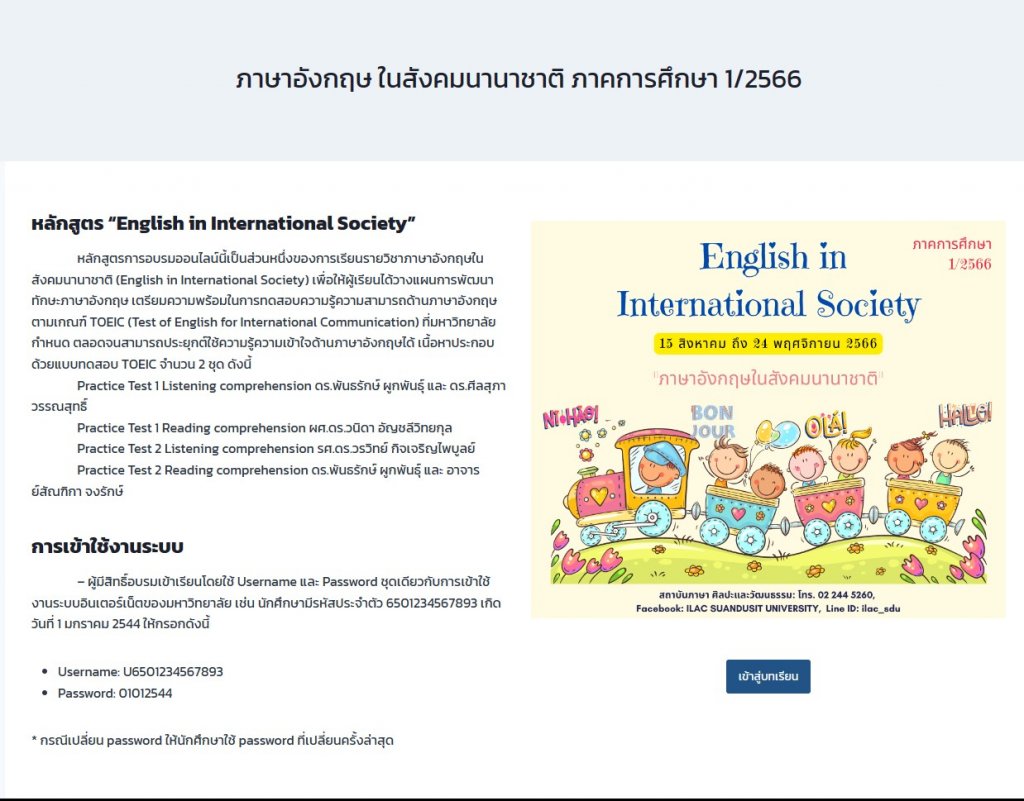 หลักสูตรภาษาอังกฤษในสังคมนานาชาติ ภาคการศึกษา 1/2566