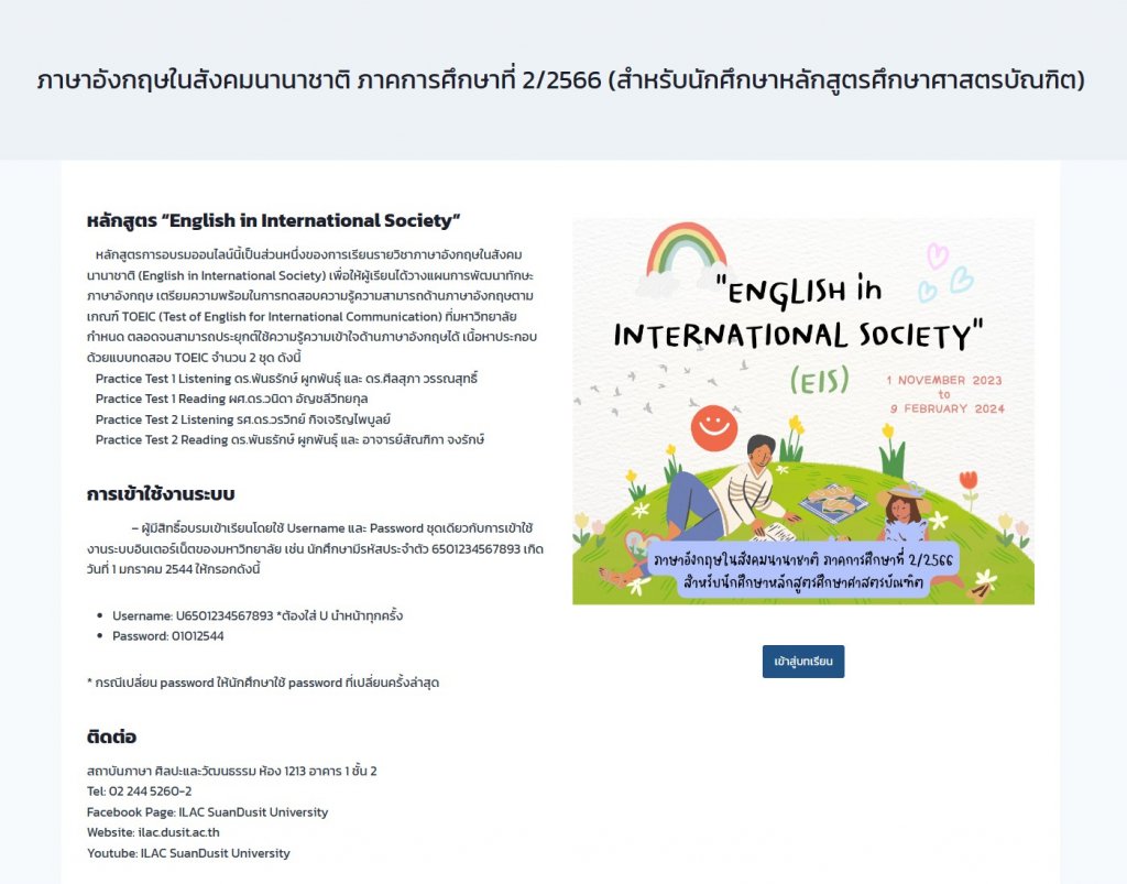 หลักสูตรภาษาอังกฤษในสังคมนานาชาติ (สำหรับนักศึกษาหลักสูตรศึกษาศาสตรบัณฑิต)