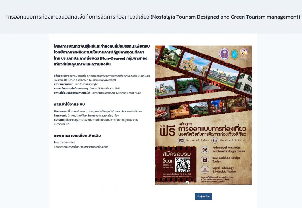 โครงการบัณฑิตพันธุ์ใหม่ฯ การออกแบบการท่องเที่ยวนอสทัสเจียฯ