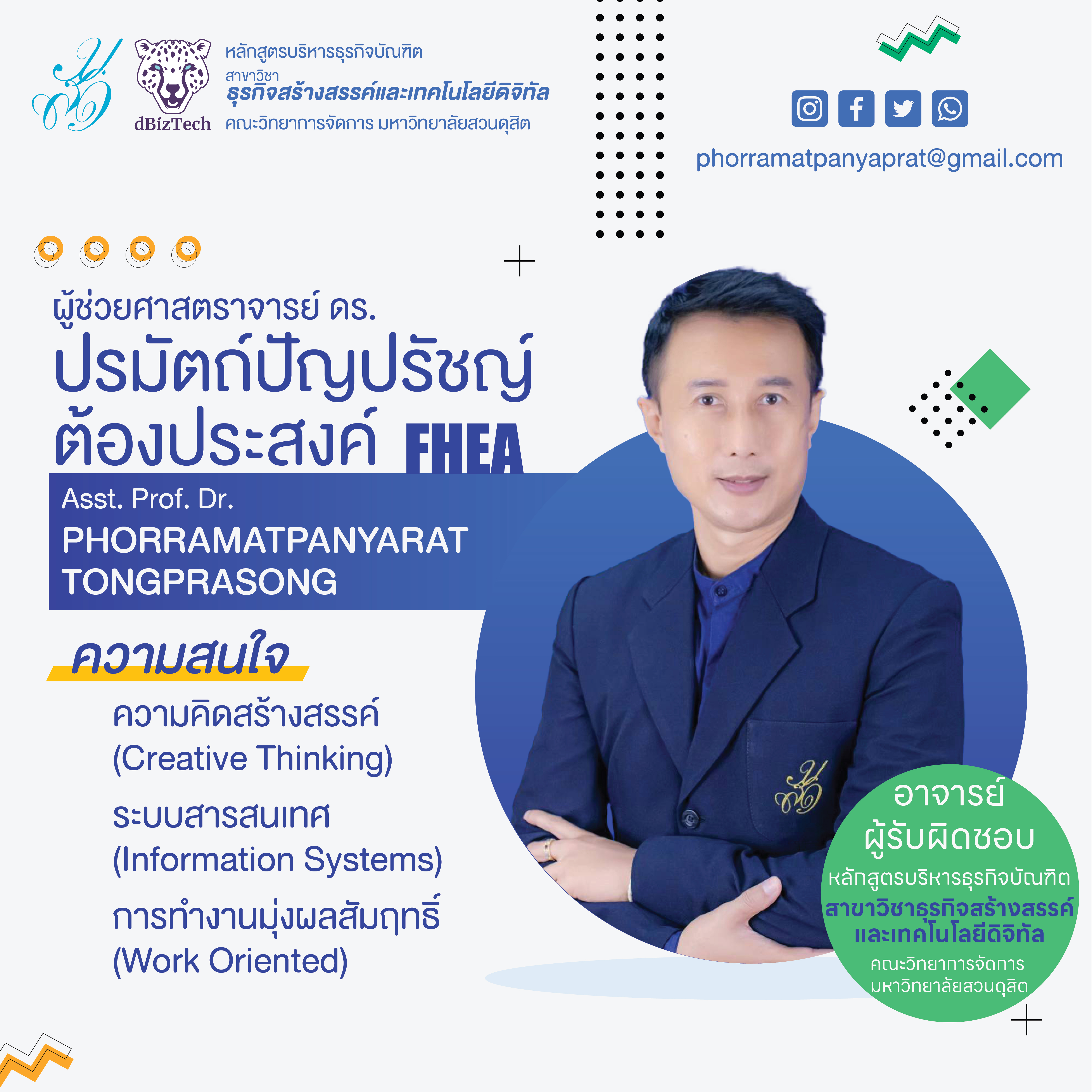 ผู้ช่วยศาสตราจารย์ปรมัตถ์ปัญปรัชญ์ ต้องประสงค์ (PHORRAMATPANYAPRAT TONGPRASONG), PhD, FHEA UKPSF