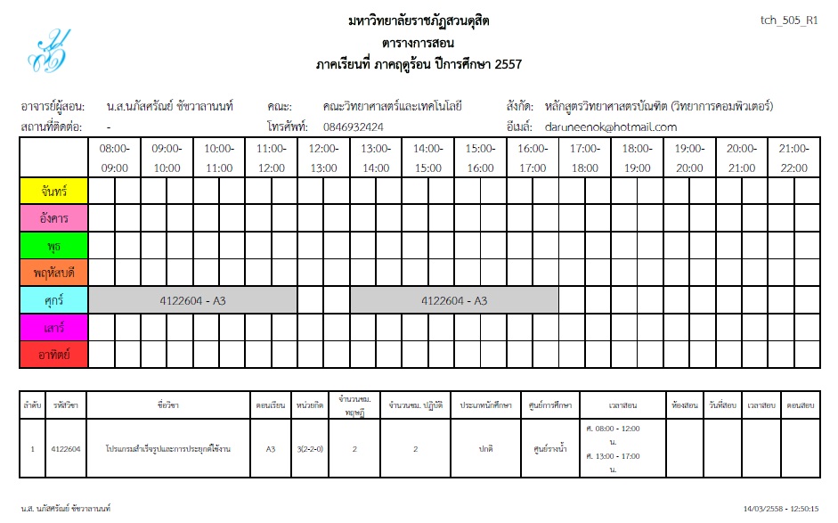 ภาคฤดูร้อน /2557 สอน 1 วิชา