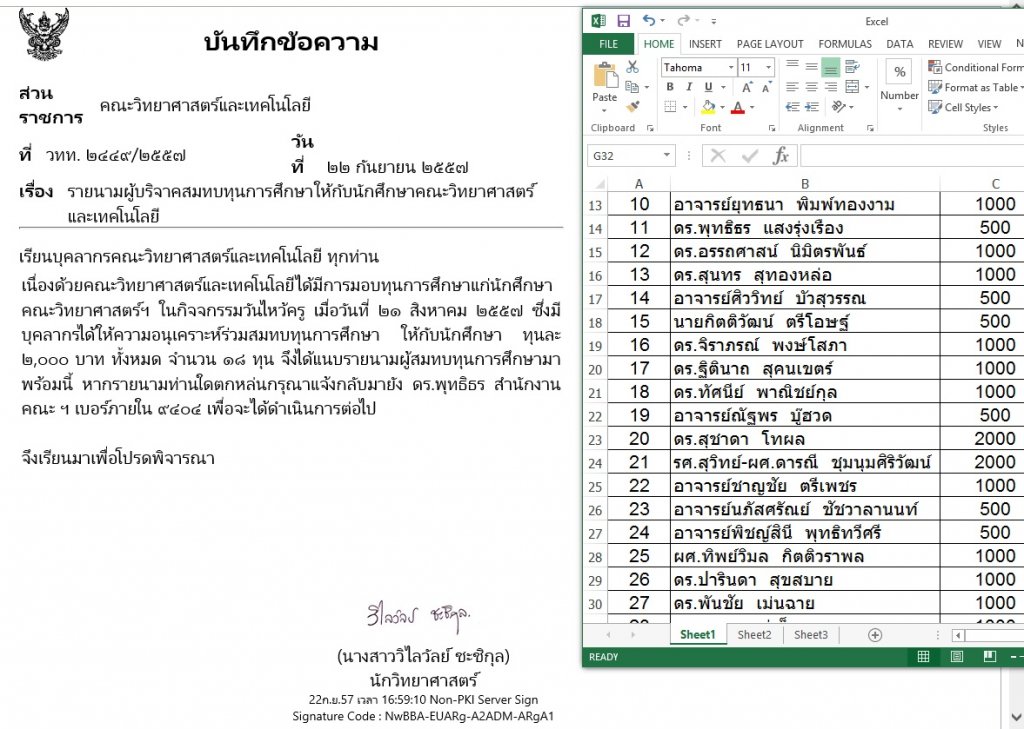 คำสั่ง คณะวิทยาศาสตร์และเทคโนโลยี เลขที่ 5229 / 2557