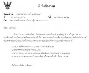 เป็นคณะกรรมการโครงการ Best Practice การจัดการเรียนการสอนตามมาตรฐานคุณวุฒิระดับอุดมศึกษา คำสั่ง เลขที่ 600 / 2558