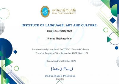 นักศึกษาสอบผ่านโทอิค 1 จำนวน 3 คน และอยู่ในระหว่างการอบรมโทอิค 2