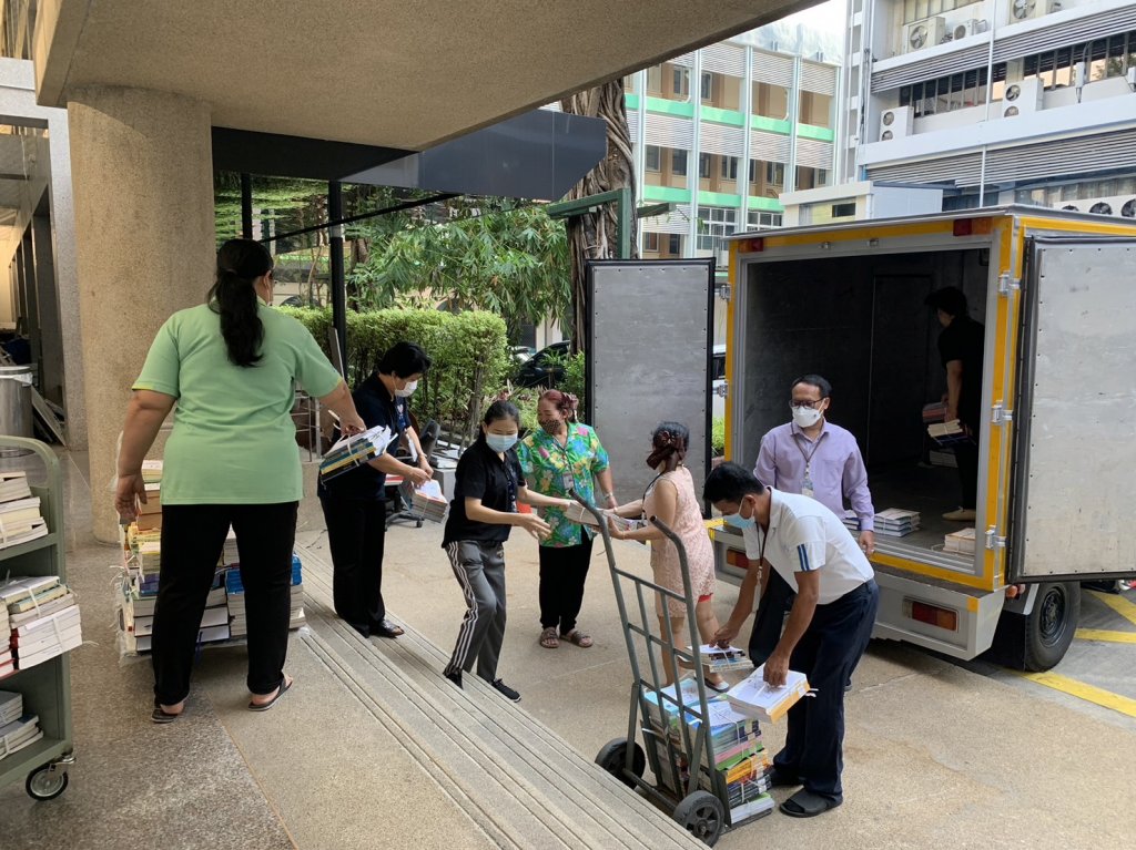 ค้นหาหนังสือ จัดส่ง Library Services (หน้าอาคาร 3) เพื่อให้บริการยืมคืน จำนวน 2 เล่ม