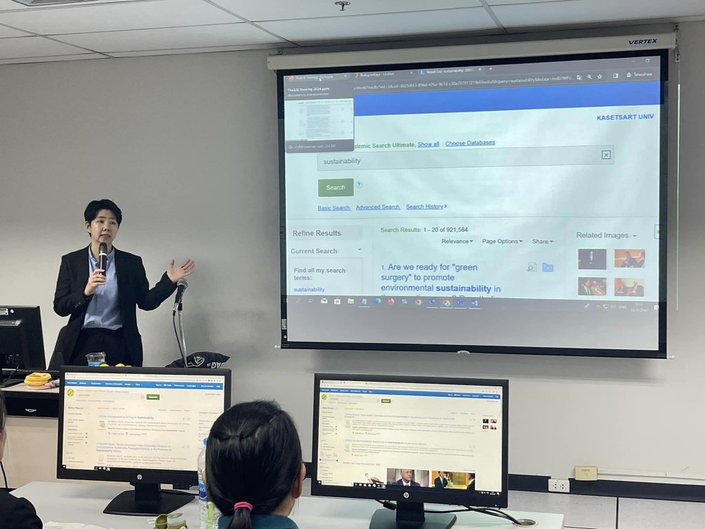 วันที่ 29 กุมภาพันธ์ 2567 คุณประดับศรี เนตรนี หัวหน้าฝ่ายห้องสมุด ณ ห้องประชุม Sharing Room ชั้น 1 อาคาร One World Library มหาวิทยาลัยสวนดุสิต