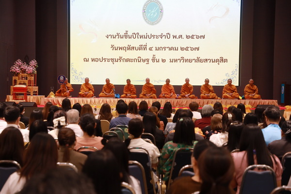ม.สวนดุสิต พร้อมทั้งร่วมตักบาตรพระสงฆ์ จำนวน 10 รูป วันที่ 4 มกราคม 2567 หอประชุมรักตะกนิษฐ ชั้น 2