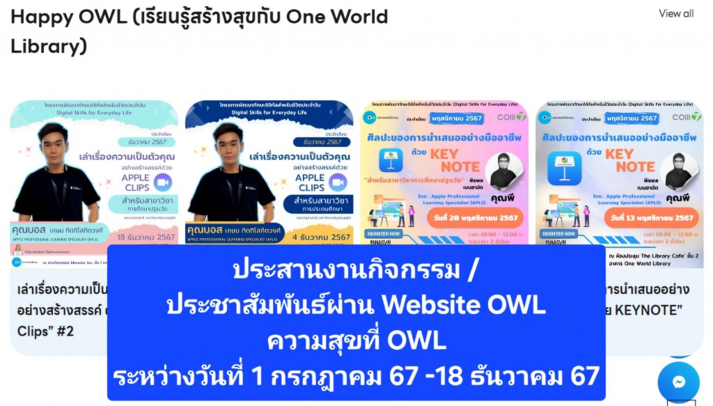 งานเขียนข่าวและประชาสัมพันธ์ผ่าน Facebook OWL (กรกฎาคม-ธันวาคม 2567)