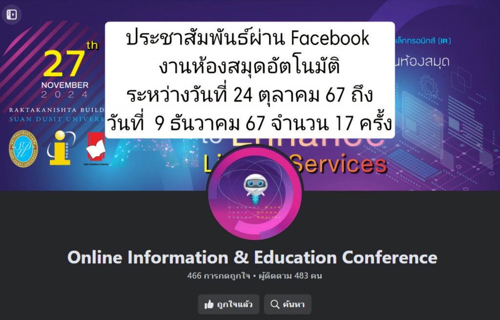 งานเขียนข่าวและประชาสัมพันธ์ ผ่าน Facebook งานห้องสมุดอัตโนมัติ