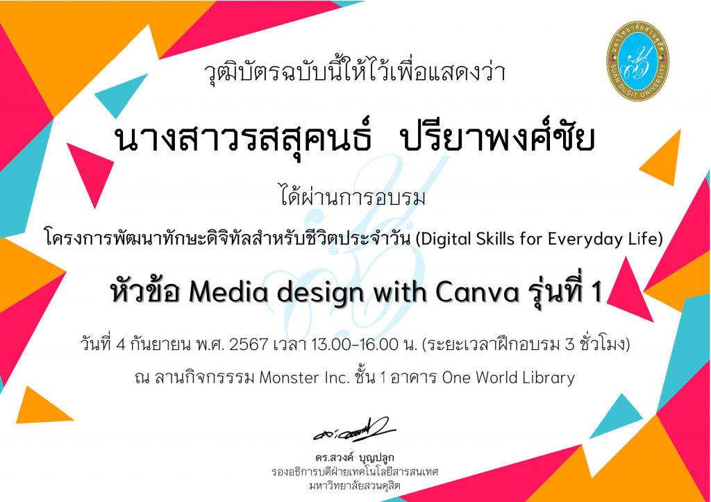 วุฒิบัตร Media design with Canva รุ่นที่ 1-2
