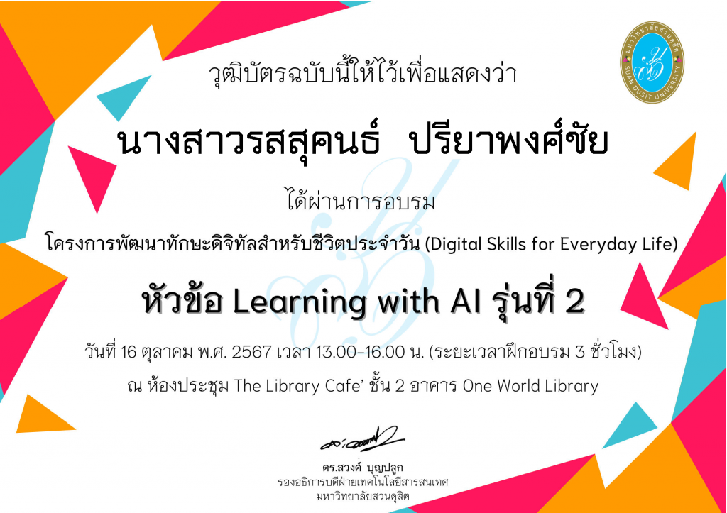 วุฒิบัตร Learning with AI รุ่นที่ 2