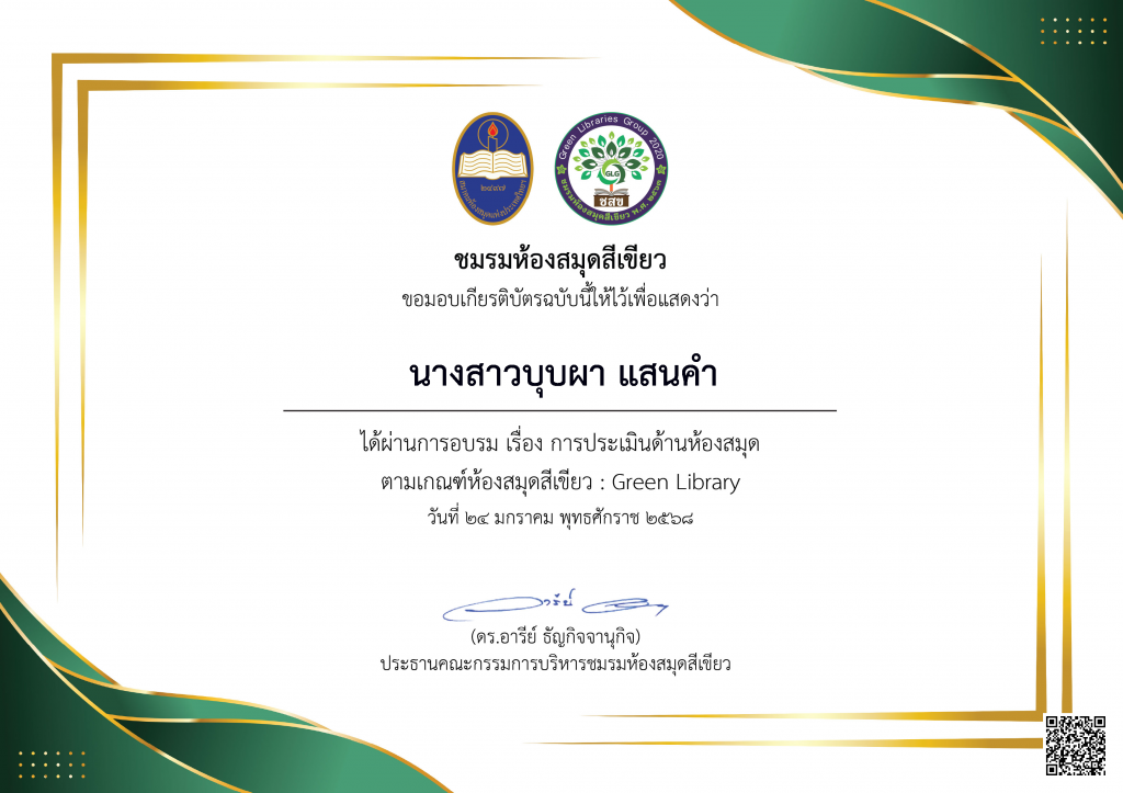 1. มีความรู้และทักษะการใช้งานระบบห้องสมุดอัตโนมัติ MATRIX (ระบบยืม - คืนหนังสือห้องผลงานวิชาการ)