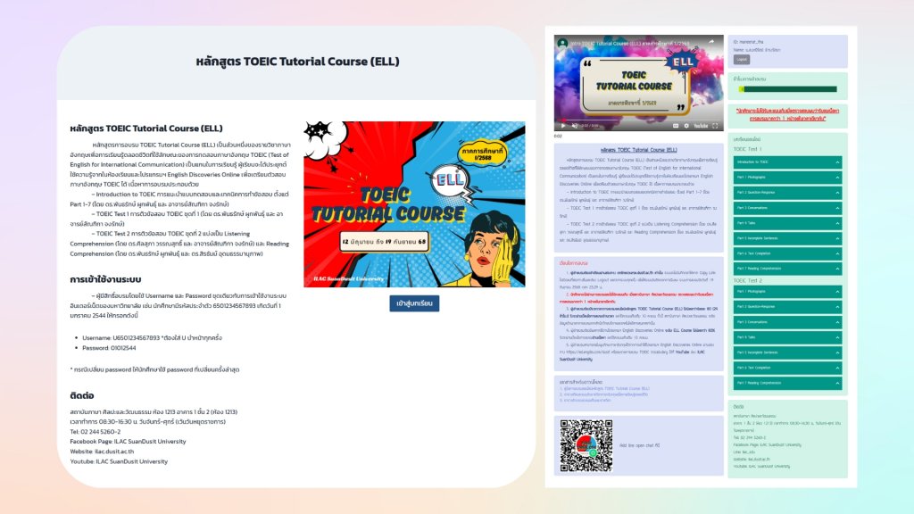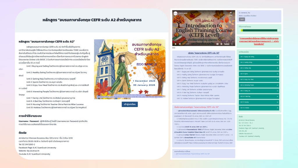 - ดูแลการจัดการสื่อออนไลน์คอร์สสำหรับนักศึกษาและบุคลากรในระบบ SDU Online course