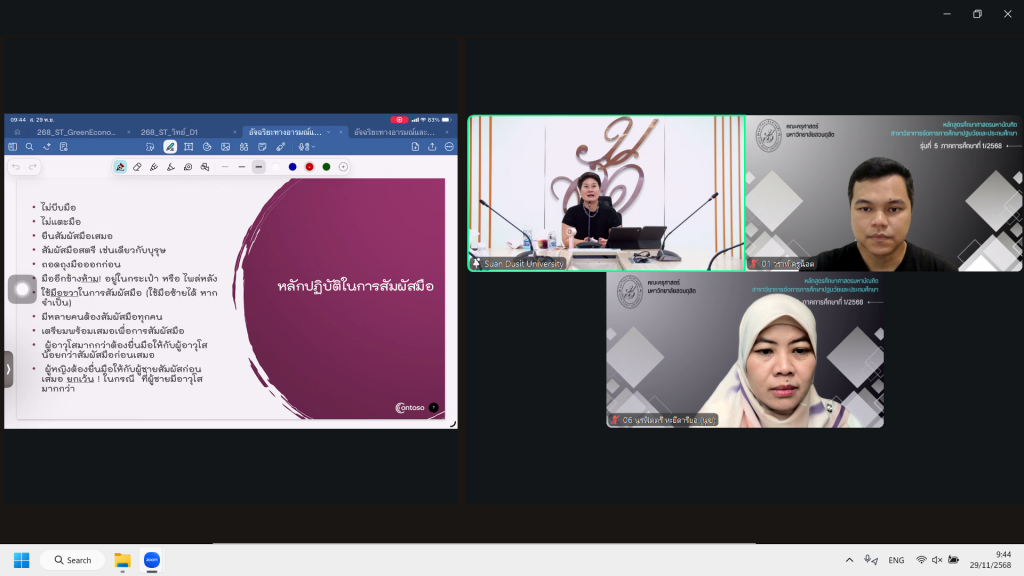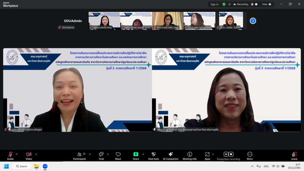 - ดูแลและควบคุมการเรียนออนไลน์ของนักศึกษาปริญญาโท หลักสูตรศึกษาศาสตรมหาบัณฑิต สาขาวิชาการจัดการการศึกษาปฐมวัยและปฐมศึกษา (รุ่นที่ 1)