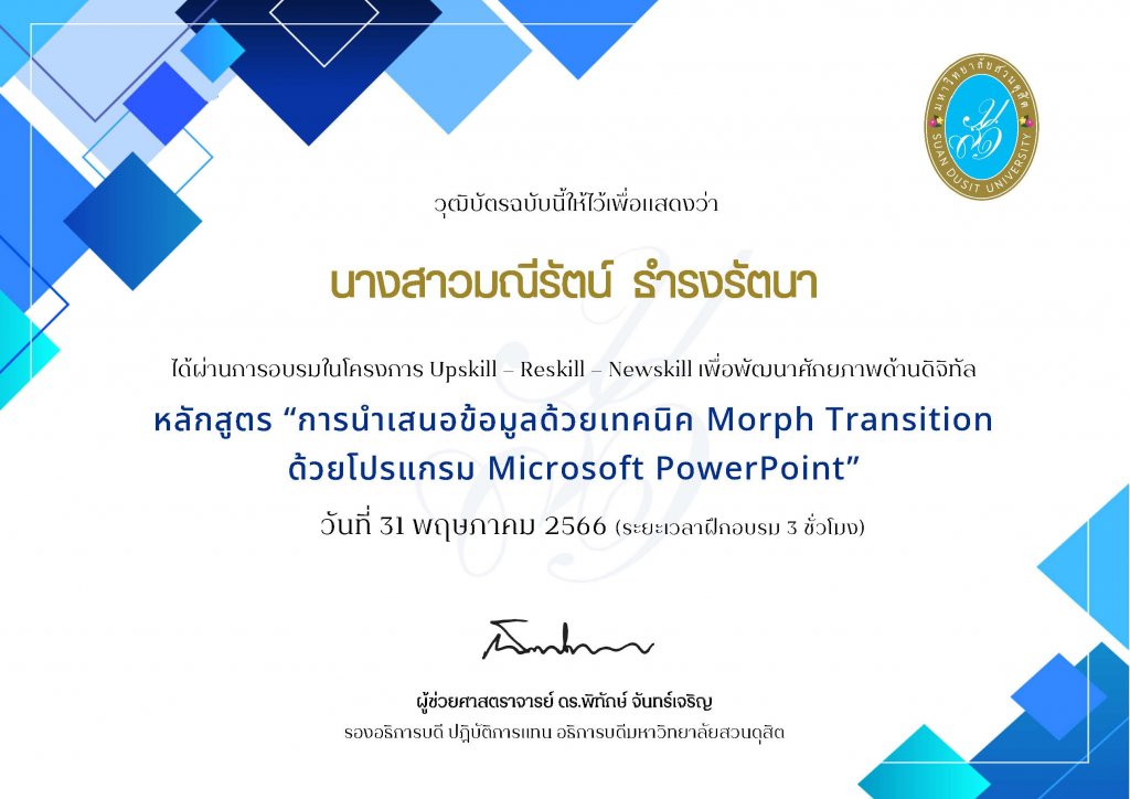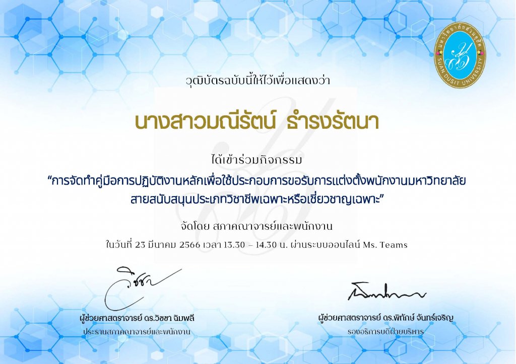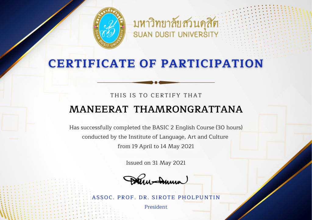 - Email address: maneerat_tha@dusit.ac.th